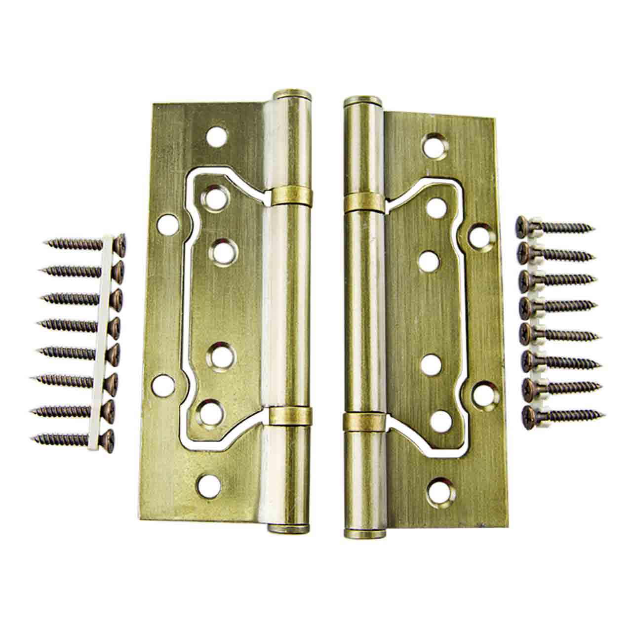 Дверная усиленная петля предназначена для установки деревянных дверей накладным методом. Монтаж без врезки с винтовым креплением осуществляется с помощью 16 саморезов, которые входят в комплект. Гальваническое покрытие устойчиво к коррозии. В универсальной дверной петле установлены втулка-подшипники и стальной стержень, что обеспечивает работоспособность 200 000 циклов открывания/закрывания.