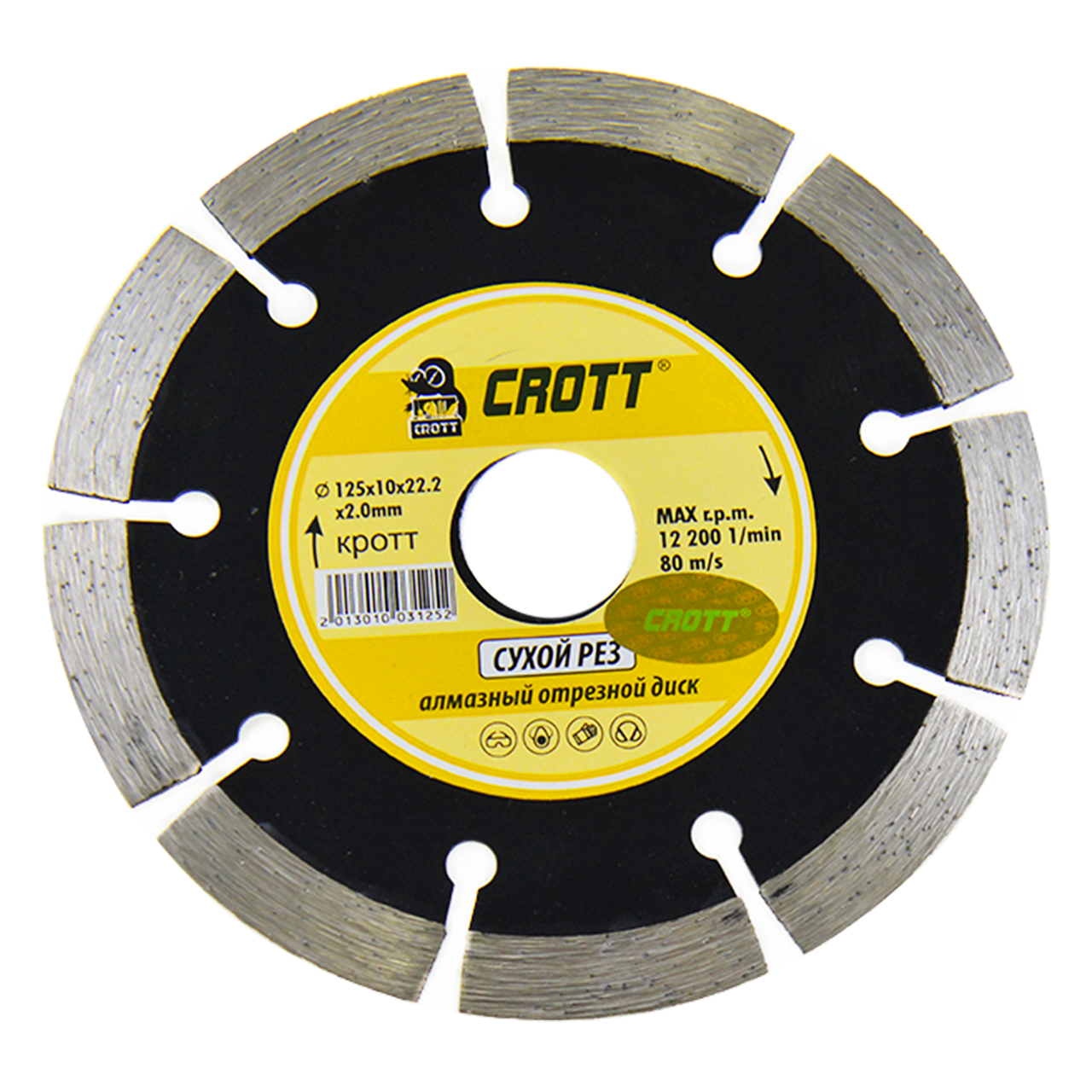 Отрезной диск 125 мм имеет полированную поверхность и сегментированную режущую кромку с алмазным напылением для точного и качественного реза. Сегменты на кромке обеспечивают дополнительное охлаждение, не давая перегреваться алмазному слою. Диск предназначен для сухого реза бетона, камня, железобетона, плитки, гранита, черепицы, пенобетона и огнеупоров. Диск используется совместно с УШМ и плиткорезом, посадочное место 22,2 мм.